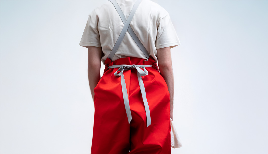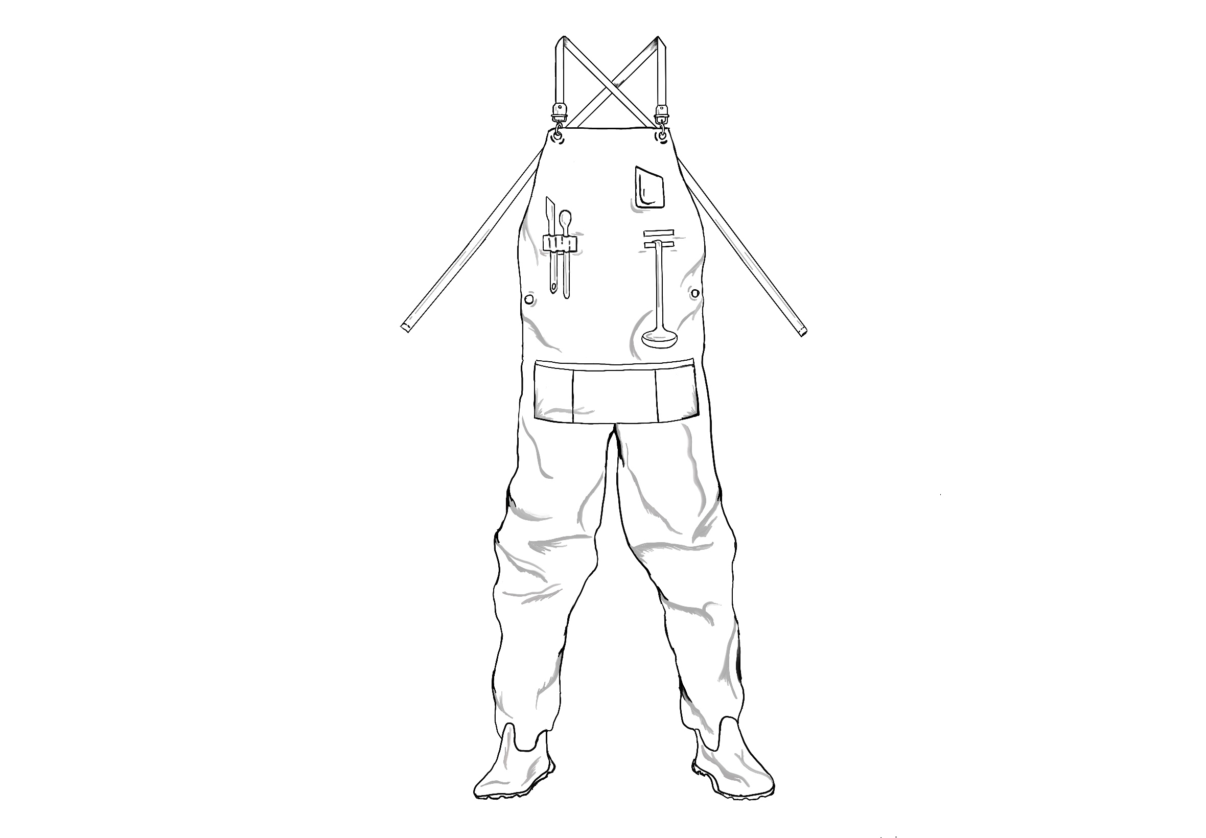 Soluzione progettuale: Tuta impermeabile ispirata al grembiule da cucina, che mantiene le tasche